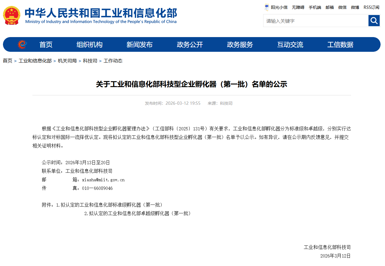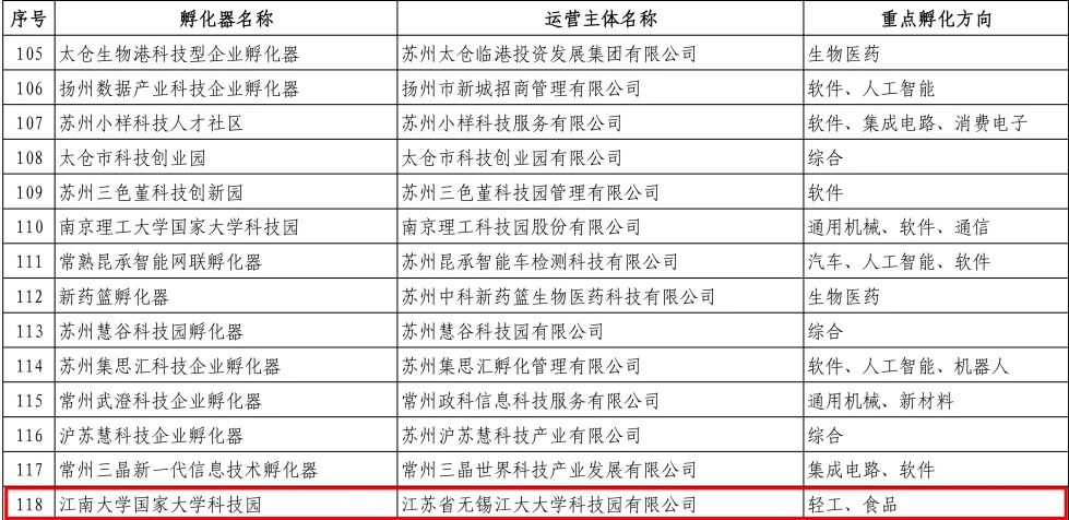 近日,工业和信息化部发布了《关于工业和信息化部科技型企业孵化器(第一批)名单》,江南大学国家大学科技园成功获评工业和信息化部科技型企业孵化器(标准级),运营主体为江苏省无锡江大大学科技园有限公司,这标志着园区在科技成果转化、高新技术企业培育及创新创业人才培养等方面工作扎实成效显著,获得相关部门的高度认可。