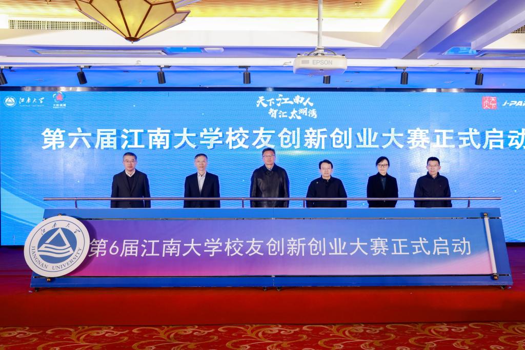 1月23日,由江南大学、无锡市委人才工作领导小组办公室、滨湖区人民政府共同主办的第六届江南大学校友创新创业大赛启动仪式暨第十届J-PARK创业嘉年华在江南大学成功举办。江南大学党委常委、副校长李兆丰,江南大学校友会会长符惠明,无锡市科技局三级调研员庞锋华,市科技创新服务中心主任肖栋,滨湖区人民政府副区长蒋维维,区政府党组成员、无锡市生物医药产业科技镇长团团长马涵彬,滨湖山水城党工委书记宋晓裕,江南大学对外合作与市校共建处处长黄敏,国家大学科技园管理办公室主任、产业技术研究院院长王立,资产公司总经理、国家大学科技园董事长李勤,智能制造学院党委书记王冰,滨湖区委组织部副部长印珺,区科技局局长高飞,无锡市委组织部人才处副处长袁倩等领导嘉宾出席活动。江南大学上海校友会、浙江校友会、无锡校友会的校友代表,江南大学学生工作处、团委、食品学院、设计学院、纺织科学与工程学院、自动化与智能科学学院、机械学院、数字与创意学院、纤维工程与装备学院等各学院(部门)分管创新创业工作负责人,以及各合作单位代表,校友大赛落地项目代表和园区企业代表等100余人出席活动。
